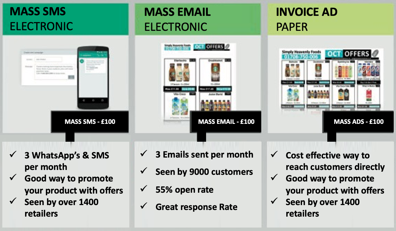 2025 – Simply Heavenly Marketing Application CONTACT INFO COMPANY NAME * YOUR NAME * YOUR EMAIL * CONTACT NUMBER * BILLING INFO BILLING / TRADING NAME * FULL BILLING ADDRESS * POSTCODE * BROCHURE ADVERTISING PAGE LISTING - A4 PAGE * 1 Page for 12 months at £350 (minimum required)2 Pages for 12 months at £6503 Pages for 12 months at £9504 Pages for 12 months at £12505 Pages for 12 months at £13506 Pages for 12 months at £1600 DO YOU REQUIRE DOUBLE PAGE?* NOYES - £650 FEATURED PRODUCTS PAGE * None1 For 12 Months - £200 FEATURED BRANDS PAGE * None1 For 12 Months - £150 INSIDE FRONT COVER None1 For 12 Months - £1500 INSIDE BACK COVER * None1 Full A4 Page For 12 Months - £1000 ONLINE ADVERTISING TOP ROTATING BANNER * NONE3 MONTHS - £3006 MONTHS - £6009 MONTHS - £90012 MONTHS - £1000 4 PANEL STATIC BANNER * NONE1 Banner - 3 Months(£300)1 Banner - 6 Months(£600)1 Banner - 9 Months(£900)1 Banner - 12 Months (£1000) TOP DEALS SLIDER - £50 Per Product Per Month (PROMOTIONAL MONTHS ONLY) * NONE1 Product2 Products3 Products4 Products5 Products6 Products7 Products8 Products9 Products10 Products11 Products12 Products13 Products14 Products15 Products16 Products17 Products18 Products19 Products20 Products SUPER BRANDS BANNER * NONE3 MONTHS - £2006 MONTHS - £4009 MONTHS - £50012 MONTHS - £700 PRODUCT GALLERY BANNER * NONE6 MONTHS - £15012 MONTHS - £200 AWESOME BRANDS BANNER * NONE6 MONTHS - £5012 MONTHS - £75 ADDITIONAL MARKETING MASS SMS PROMOTIONAL MONTHS ONLY * NONEMass SMS - £100 MASS EMAIL PROMOTIONAL MONTHS ONLY * NONEMass Email - £100 INVOICE AD PROMOTIONAL MONTHS ONLY * NONEInvoice AD - £100 LEAVE A MESSAGE Any Special Requirements?*